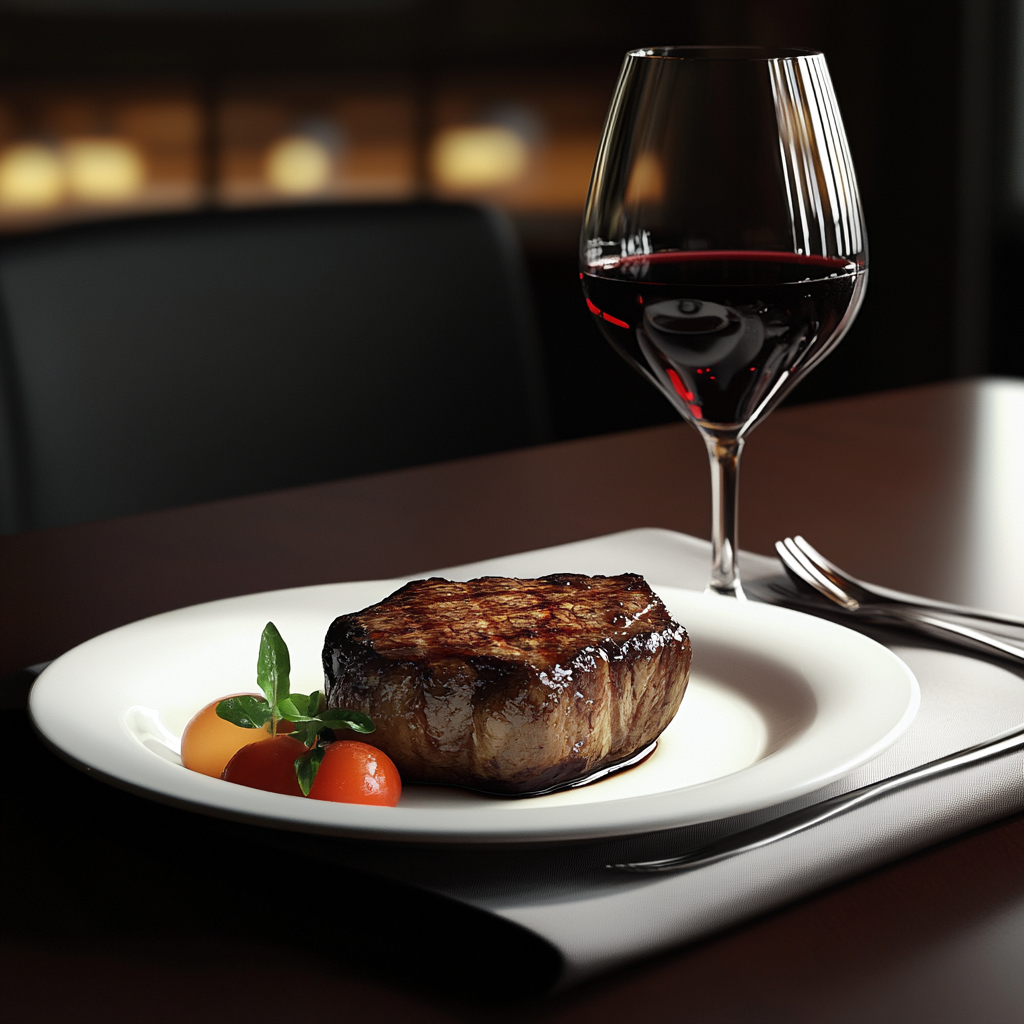 - Filet Mignon with Pinot Noir: Our tender, buttery Filet Mignon pairs perfectly with a light to medium-bodied Pinot Noir. The wine’s subtle red fruit flavors and soft tannins enhance the delicate texture of the filet without overpowering it.