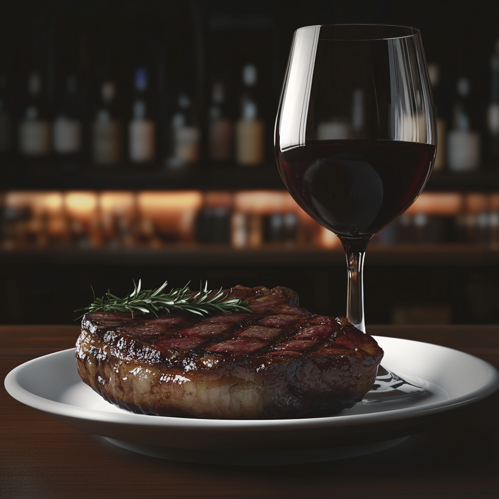 - Ribeye with Cabernet Sauvignon: The Ribeye is known for its rich marbling and intense flavor. A bold Cabernet Sauvignon, with its robust tannins and dark fruit notes, is the ideal match. The wine’s structure cuts through the fat of the Ribeye, creating a harmonious balance on the palate.