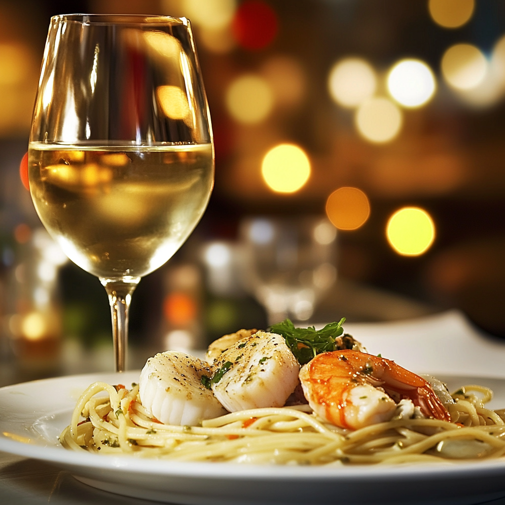 🍝 Seafood Linguini – Shrimp, scallops, cod, and salmon are sautéed in herb-butter and white wine, tossed with alfredo sauce and linguini.